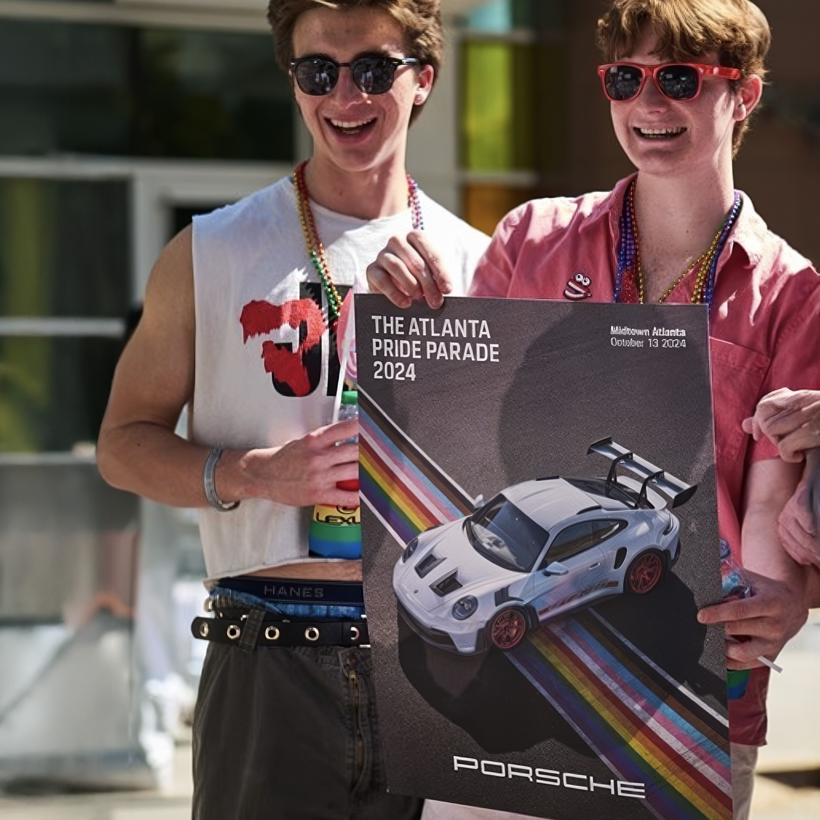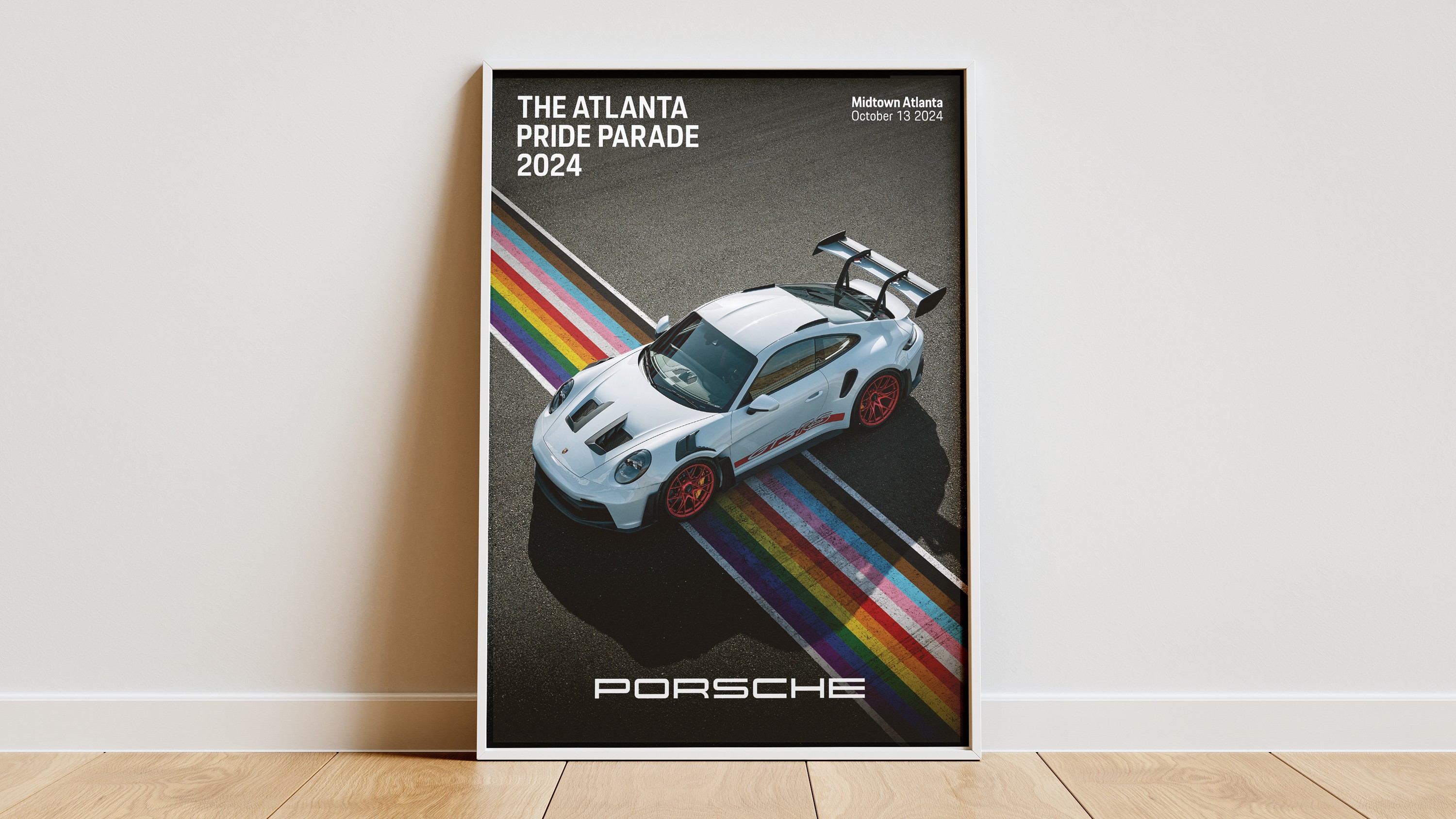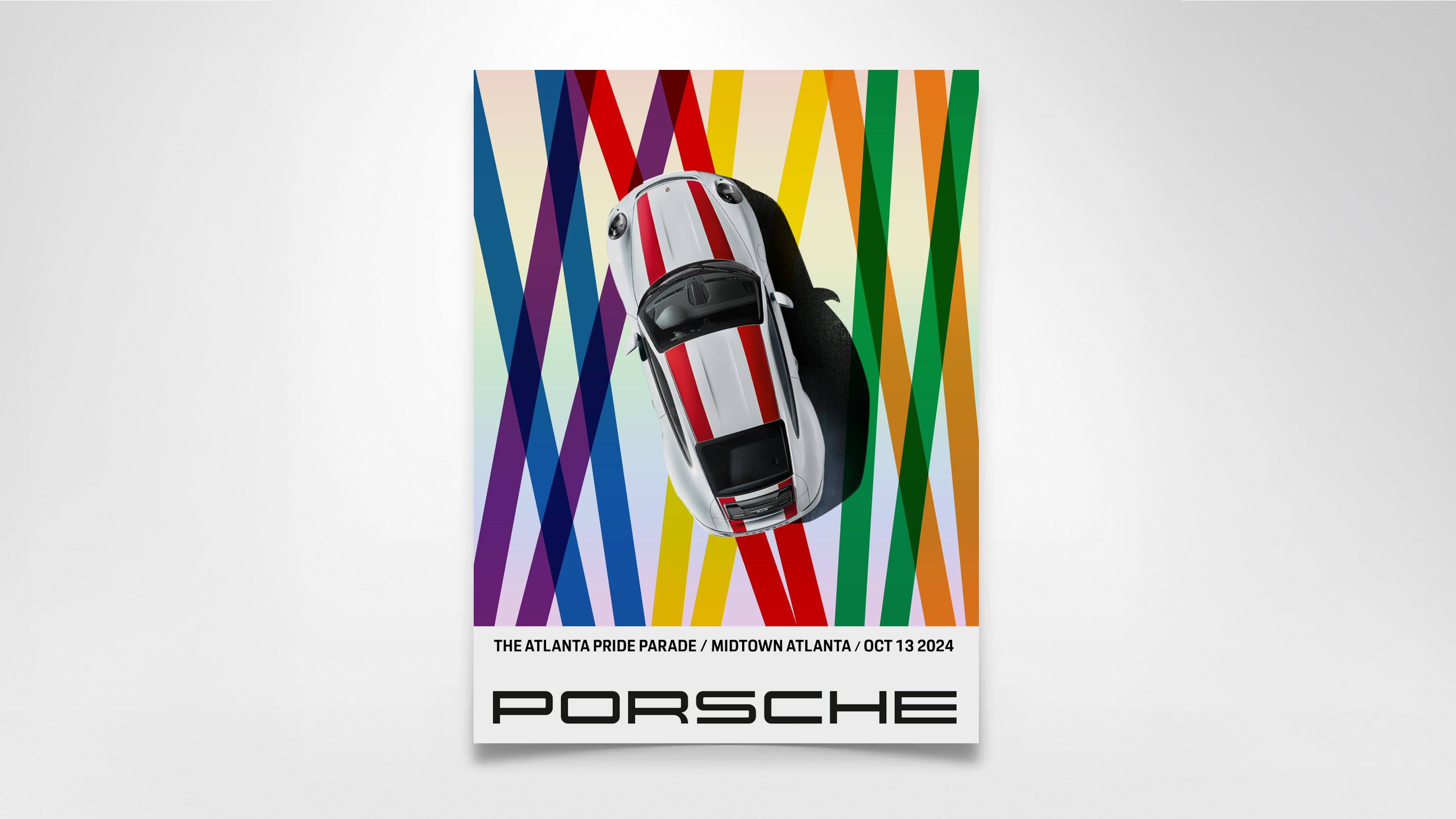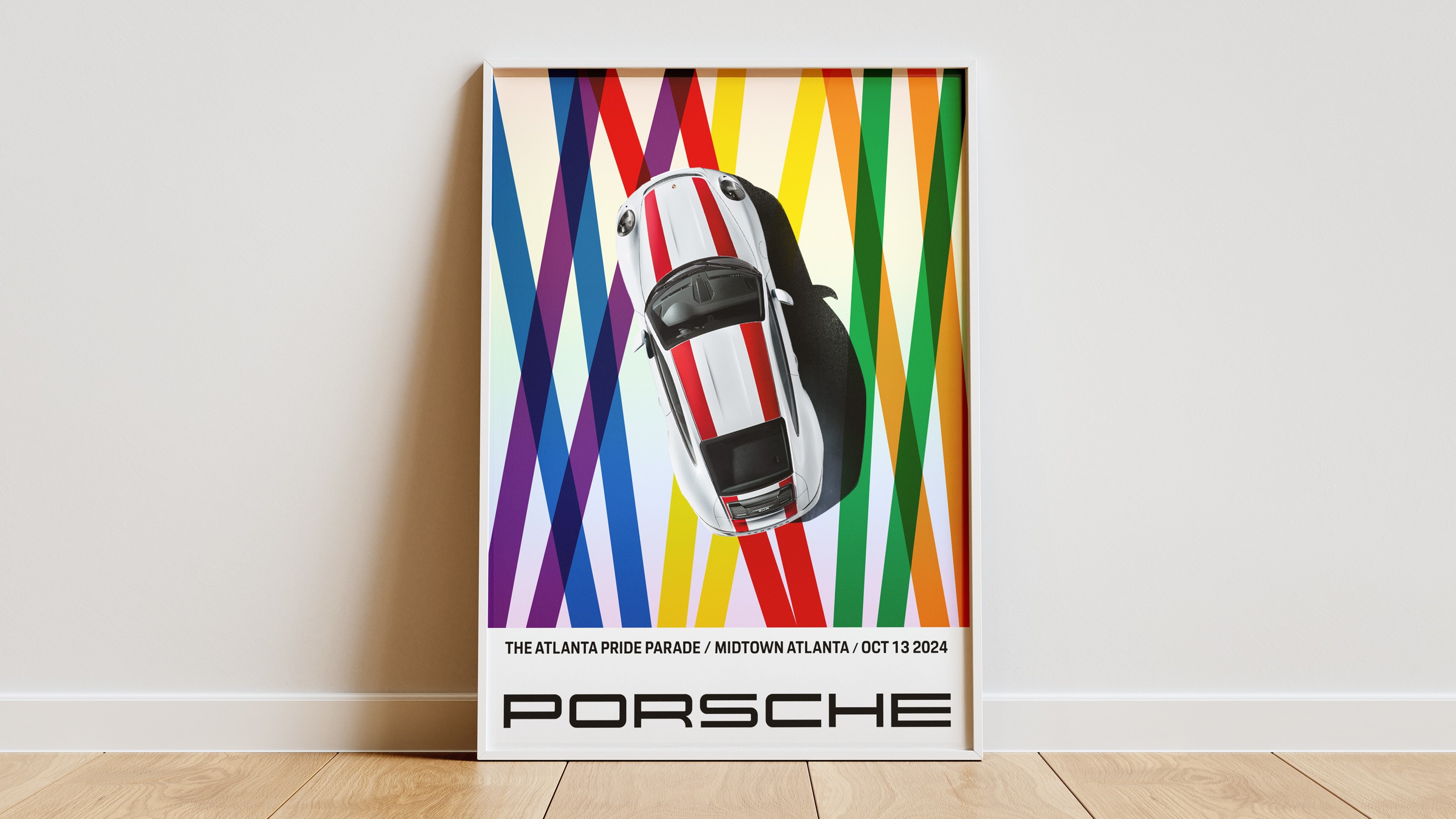 We created a poster for Porsche in its hometown of Atlanta to celebrate the Pride Parade. The design subtly nods to Midtown Atlanta’s iconic rainbow crosswalks, an unmistakable symbol of where the parade was happening.