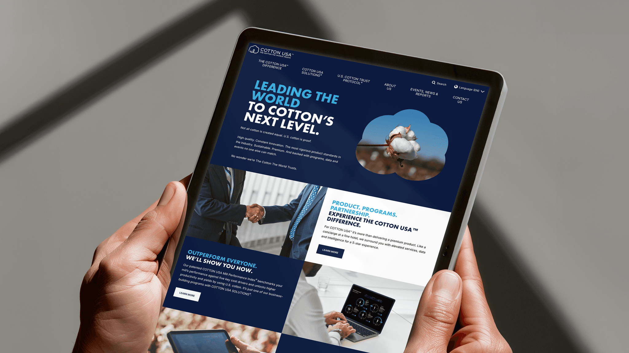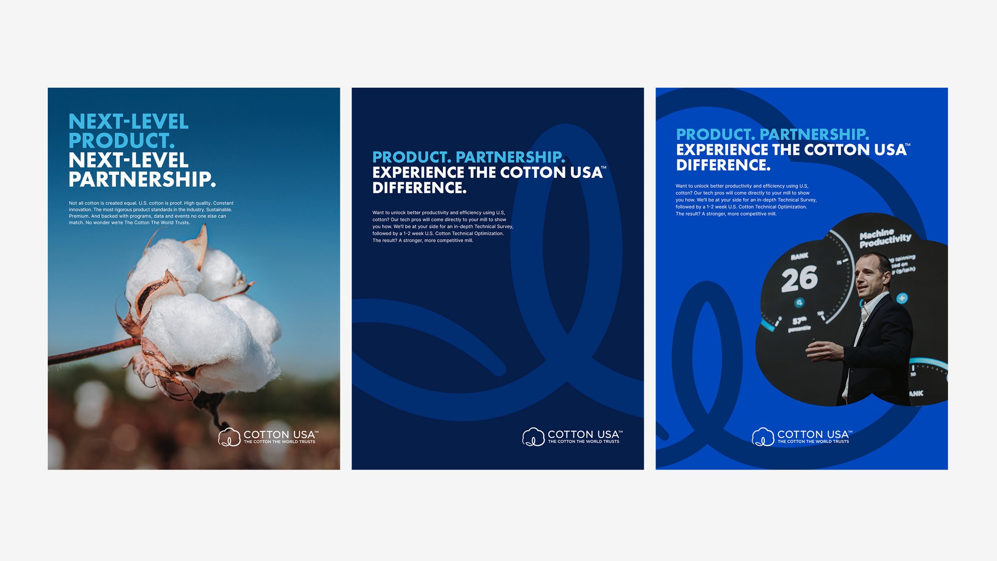 Cotton Council International has a big job: to promote the superiority of U.S. cotton to overseas mills and manufacturers as well as big brands and retailers. So we needed our redesign of the COTTON USA to capture what we call The COTTON USA Difference. We reimagined everything: their site, events, social presence, ads, even their booth furniture at trade shows. The result? A COTTON USA brand as impressive as U.S. cotton itself.