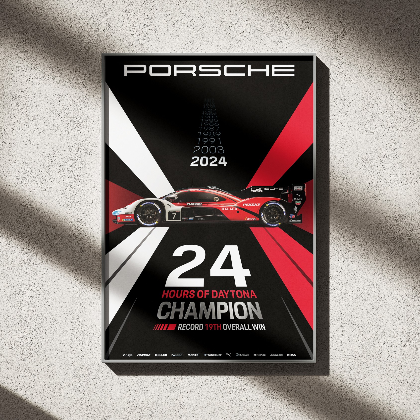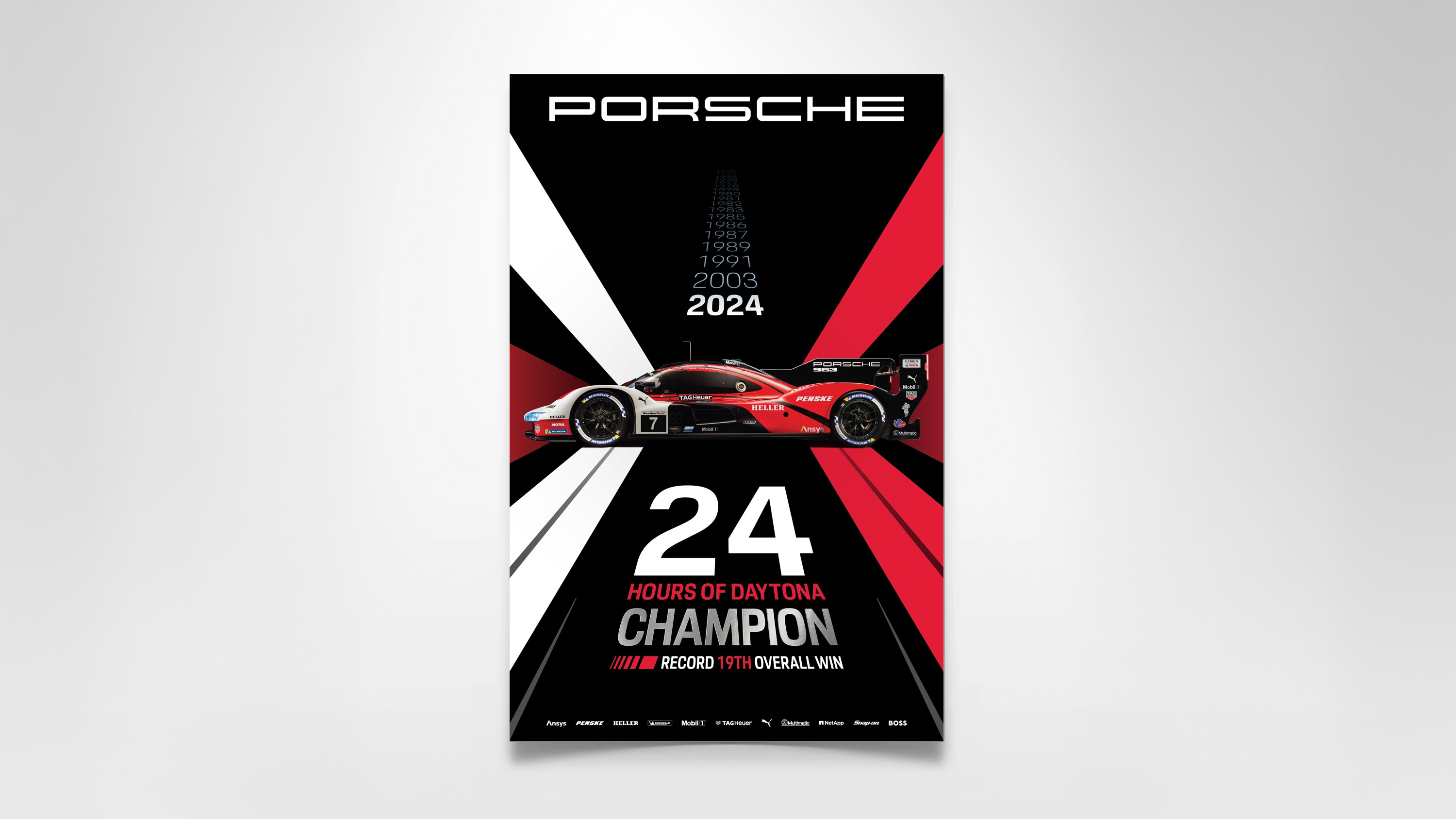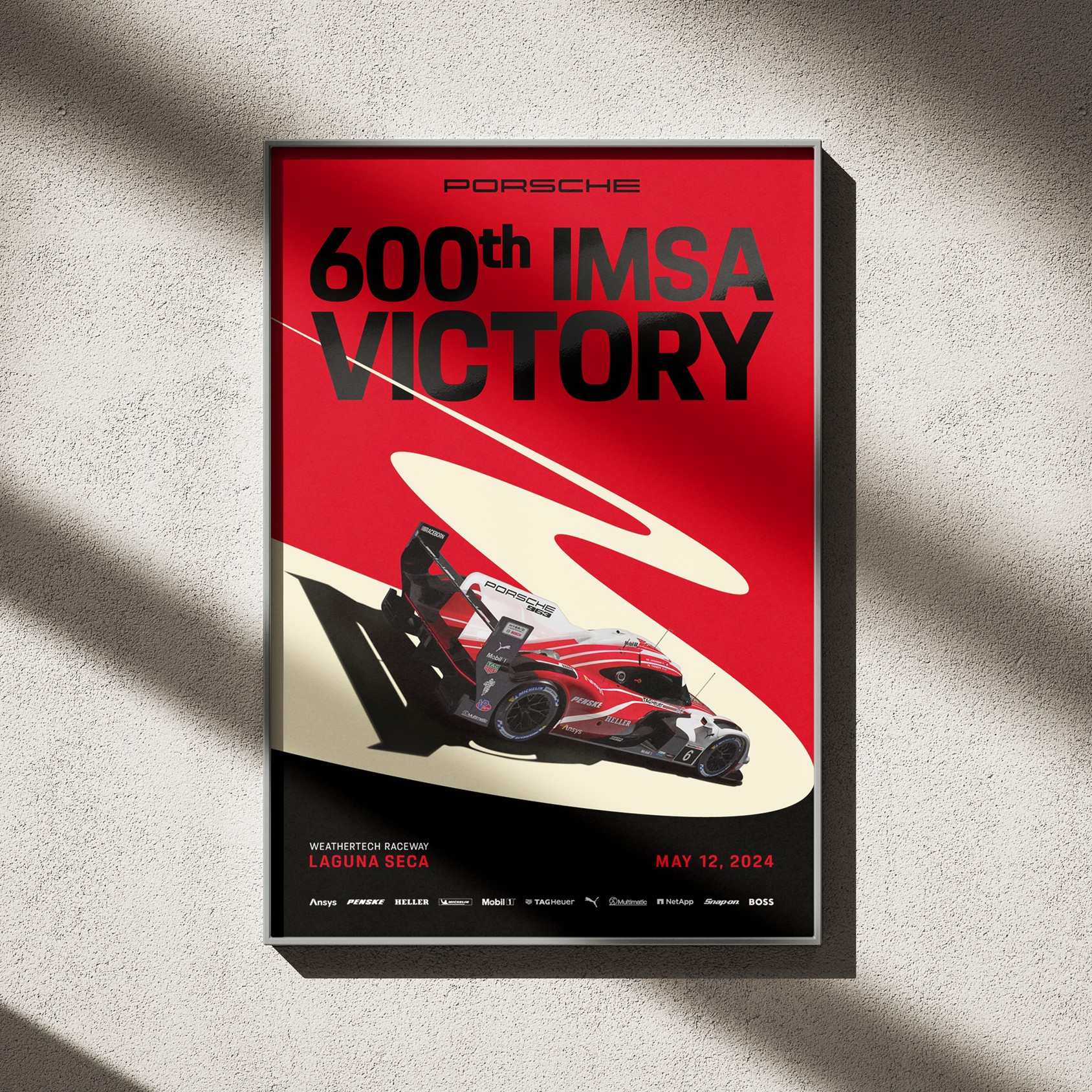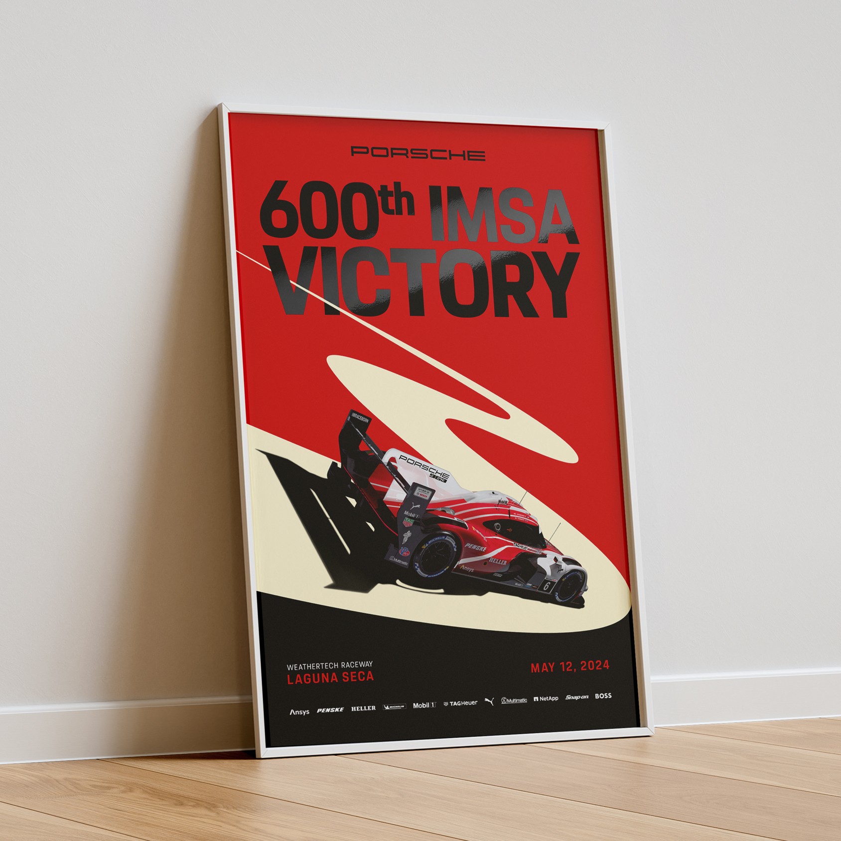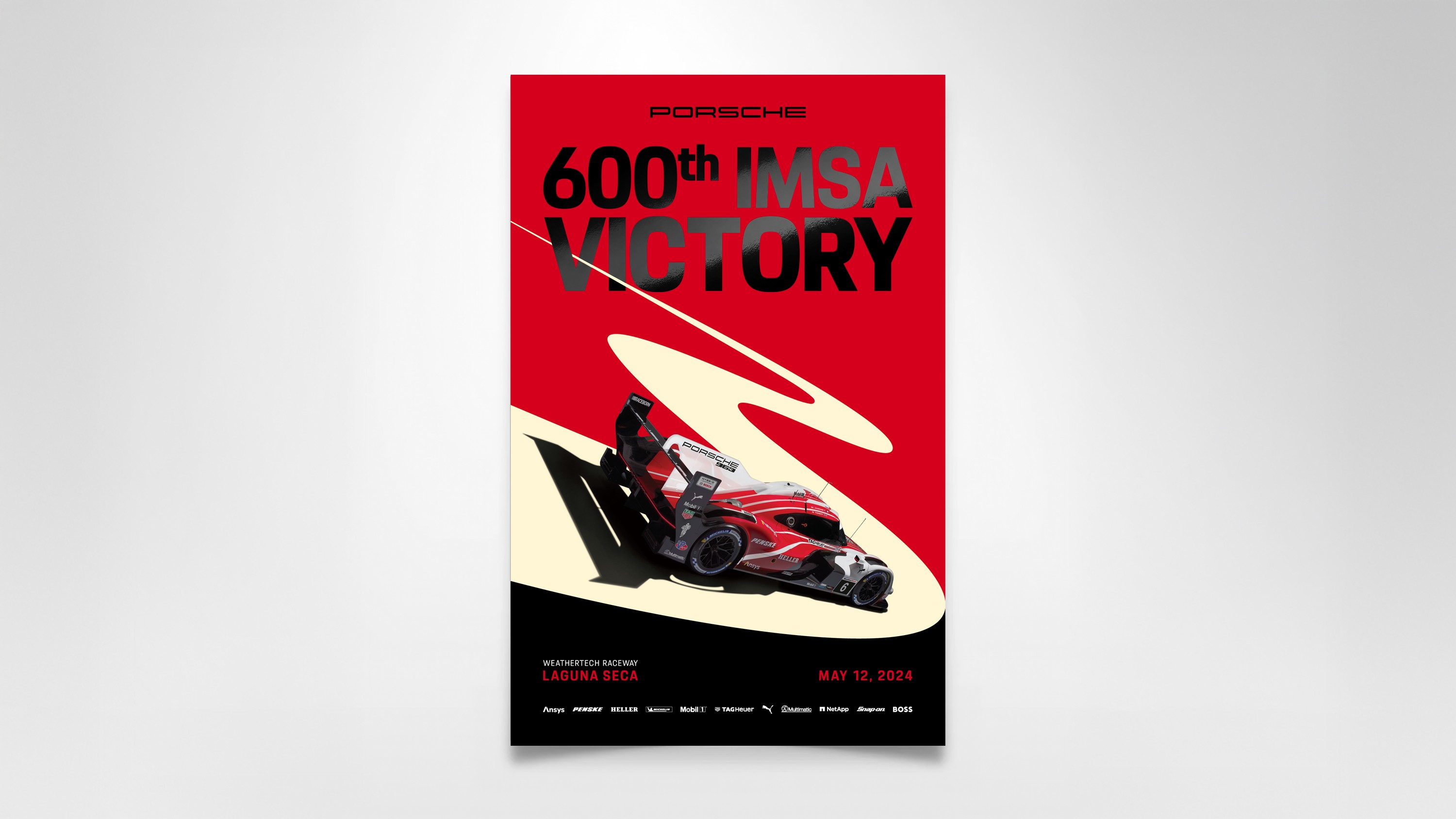 In 2024, the Porsche 963 won the 24 Hours of Daytona and Porsche achieved its 600th IMSA victory at Laguna Seca. These milestones were celebrated through a series of commemorative posters.