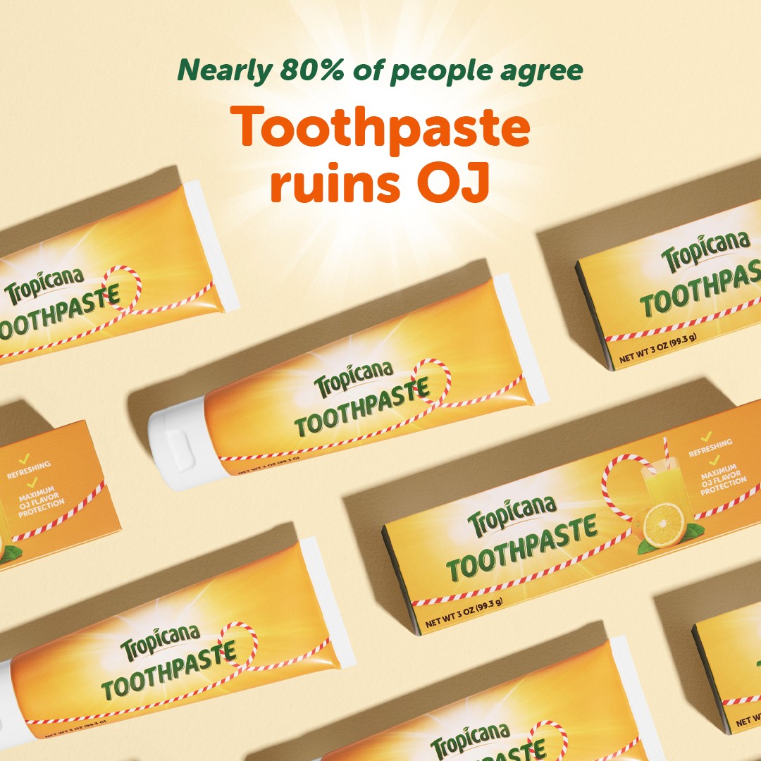 Most toothpaste has a chemical that renders orange juice bitter and nasty. Instead of telling America to stop brushing their teeth, we made a toothpaste with Maximum OJ Flavor Protection.